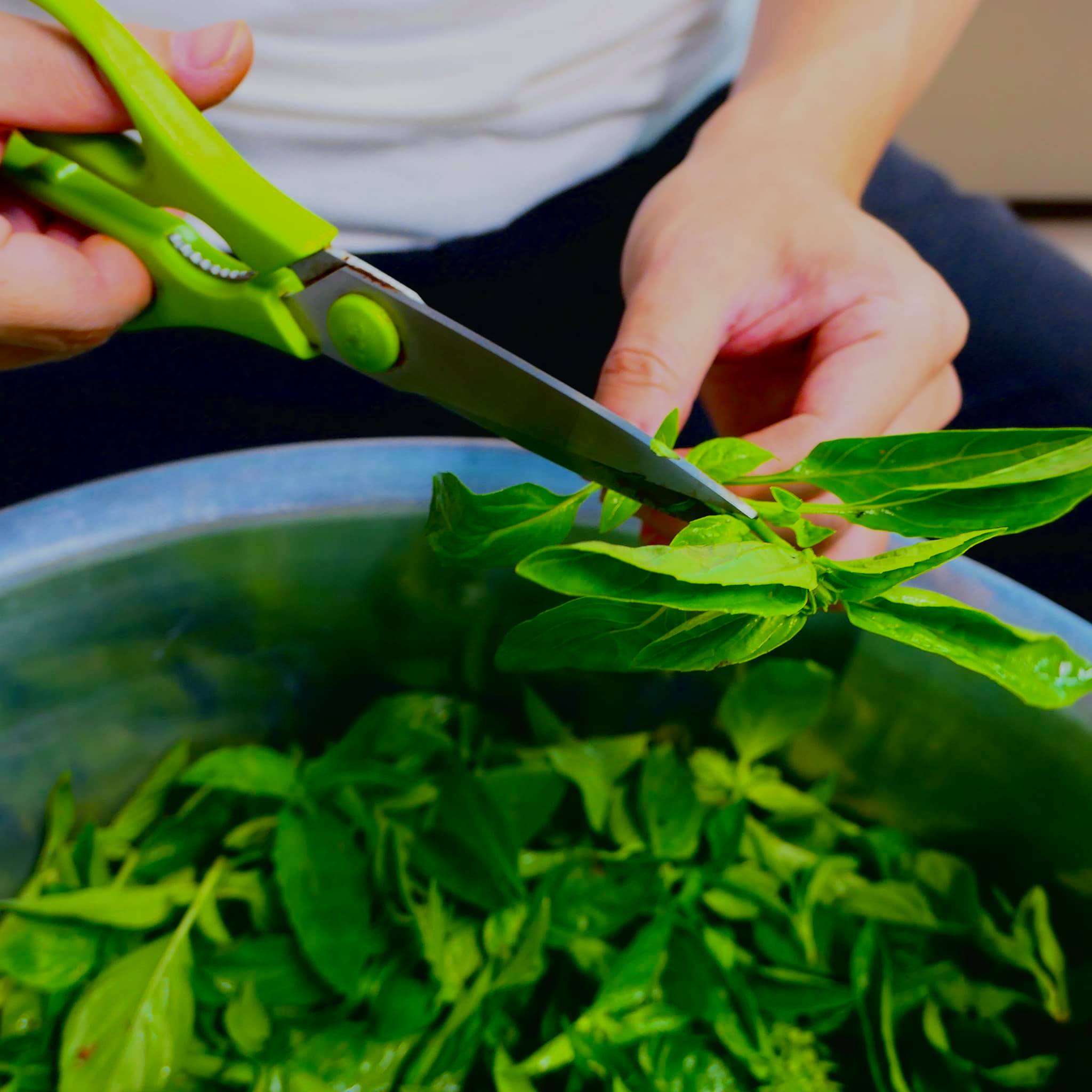 只取九層塔嫩葉部分,不取老葉木質梗,保留完整香氣。如同茶葉高規格製作工序,以2道飲用水洗去泥土與昆蟲等髒汙後,冷風除濕晾乾多餘水分,有效降低生菌數,並將九層塔香氣精華鎖在葉面,不因水洗、空氣氧化。